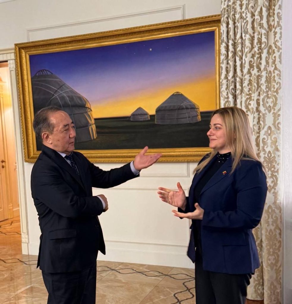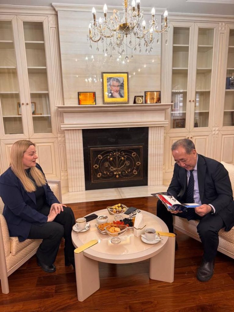 Astaná, 20 de febrero de 2026.- La embajadora de Venezuela en la República de Kazajistán, concurrente ante la República Kirguisa, Rosalba Lo Bue Antico, realizó una visita de cortesía al embajador de la República Kirguisa en Kazajistán, Kudaibergen Bazarbaev, con el objeto de estrechar lazos de amistad y cooperación, y preparar un productivo plan de trabajo conjunto para dinamizar las relaciones de cooperación bilateral, en los ámbitos diplomático, económico-comercial y cultural.